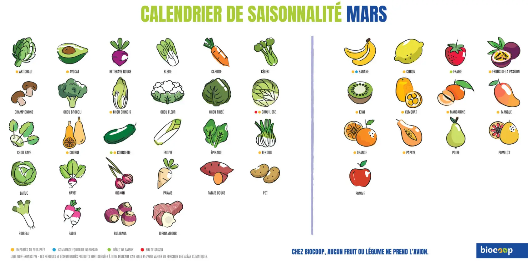 Découvrez le calendrier des fruits et légumes de saison du mois de Mars